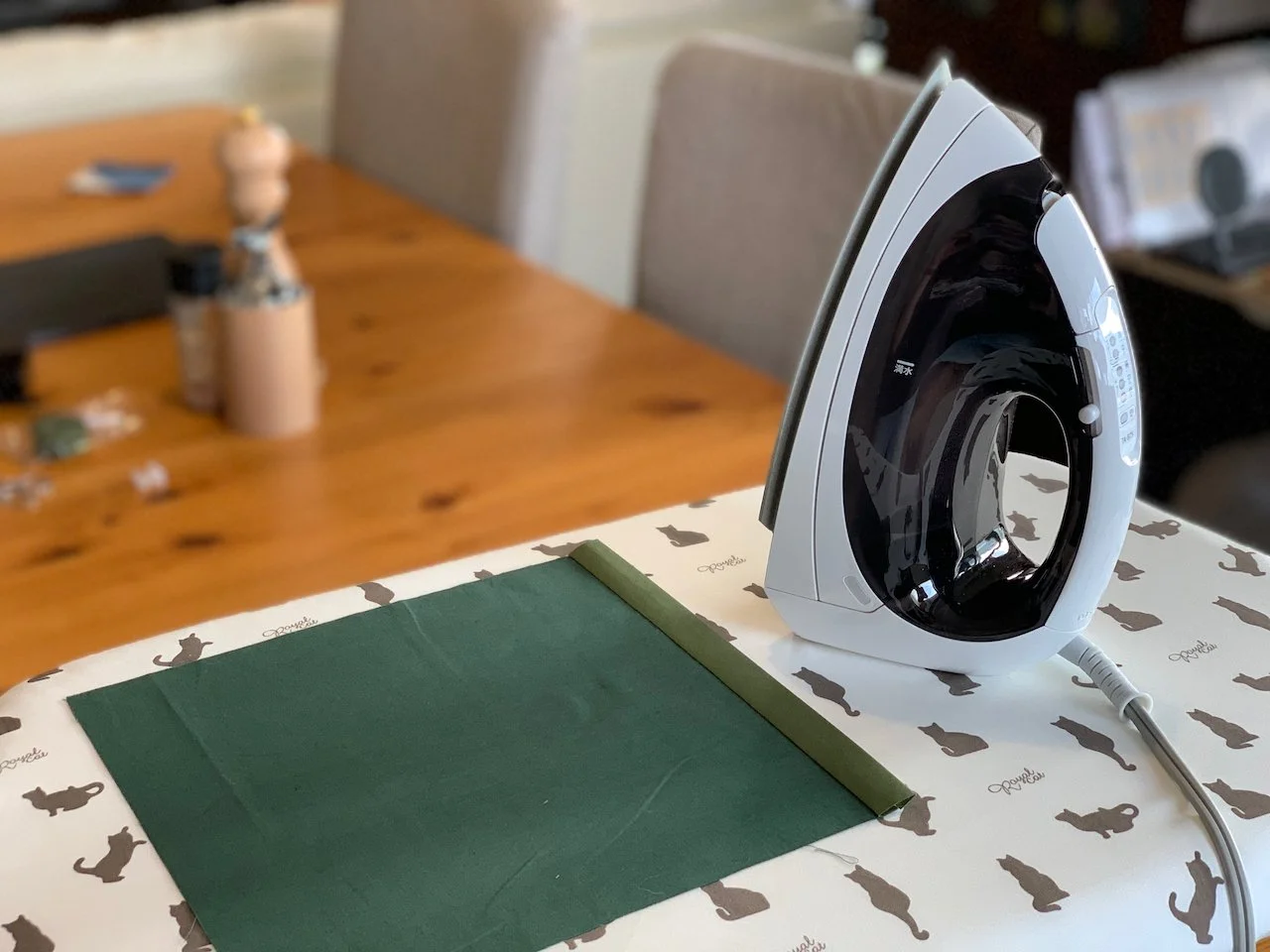With the iron I folded and pressed the tape over the edge.