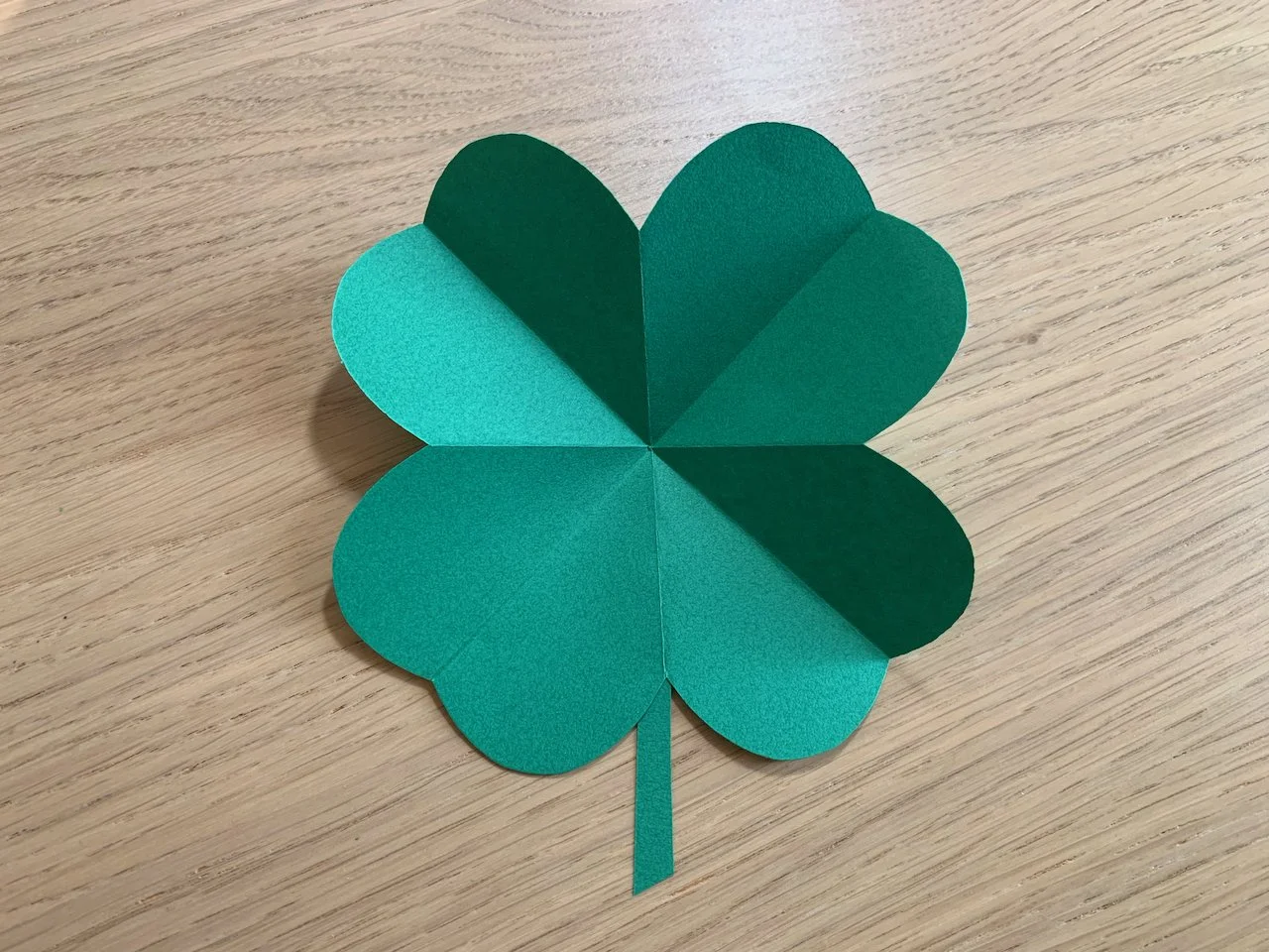 All you need to make a lucky clover yourself are a square piece of green paper, scissors, and a glue stick.