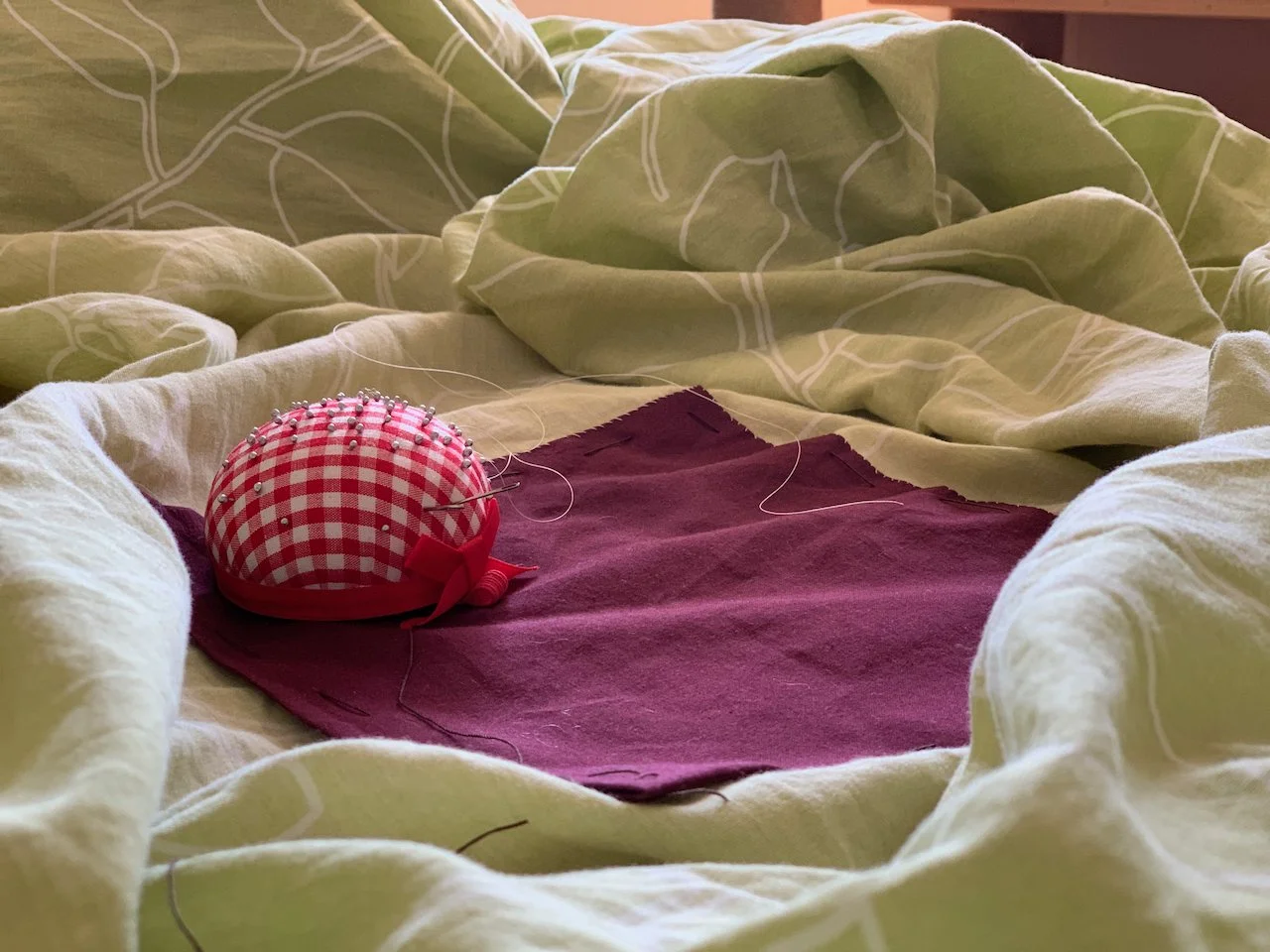 Very recently my husband stumbled over a YouTube channel, the one from Bernadette Banner. By now we must have watched all her videos. I may not ever be able to sew historical, or historically inspired garments myself, but at least I want to be able to mend and adjust my own clothing. For someone who has a rather unique style and has always appreciated a good thrift find, being able to do this is a powerful tool. I also want to deliberately be more sustainable with what I buy and wear. And this is the second answer to the above question. When I have everything at home to ‘quickly’ mend my bed sheet, why use up more resources and have a new item delivered from somewhere.