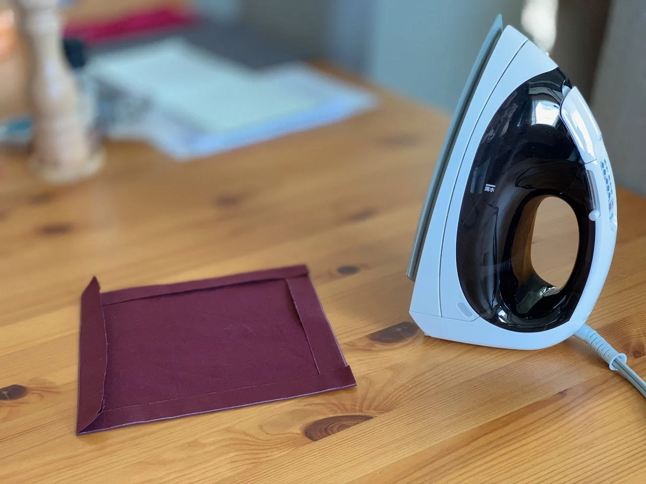 After cutting the square out along the outer line, I pressed the seem allowance in.